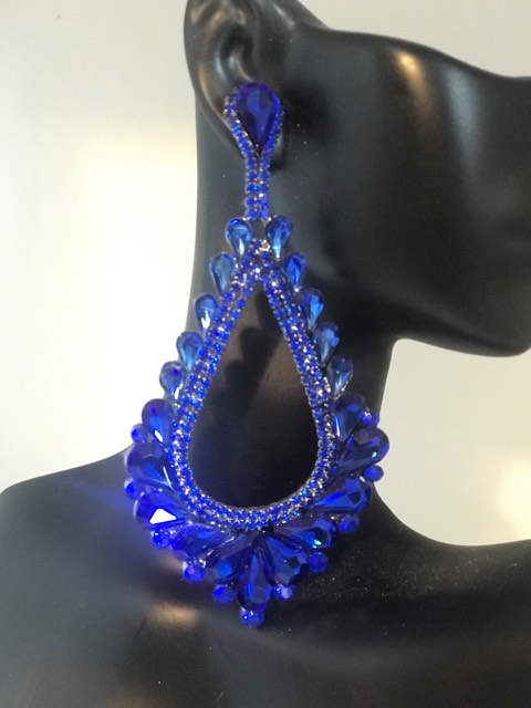 • Color : Royal Blue• Size : 2" X 4"• Post Back• Oversized Cut Out Crystal Teardrop Earrings