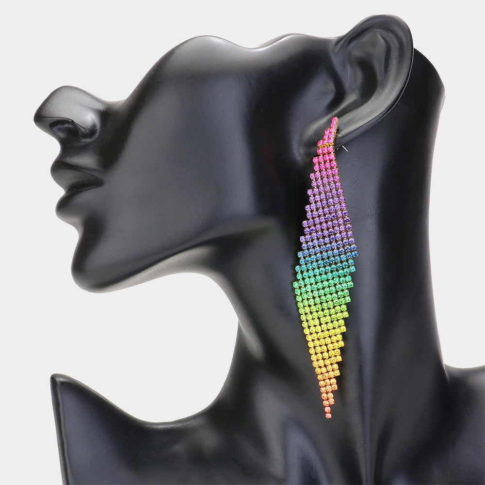 • Size : 0.9" X 4.25"• Post Back• Multi-Color Rhinestone Ombre Abstract Paved Pageant Earrings | Prom Earrings