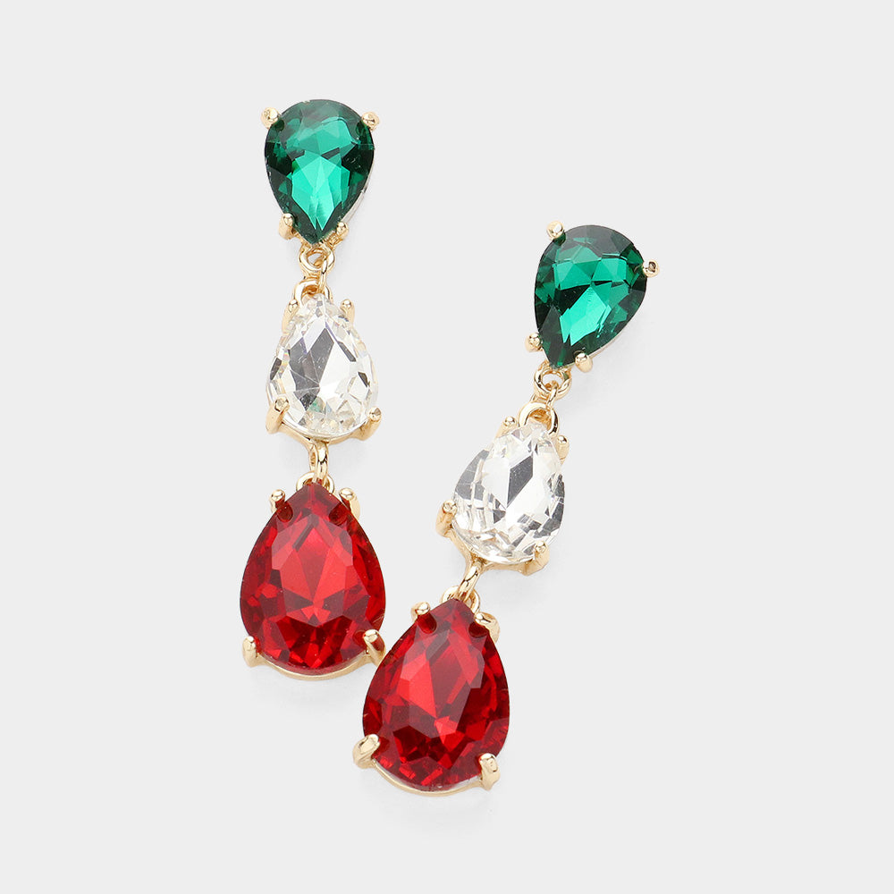 • Size : 0.5" X 2.25"• Post Back• Multi-Color Triple Teardrop Dropdown Pageant Link Earrings |Multi-Color Dangle Earrings
