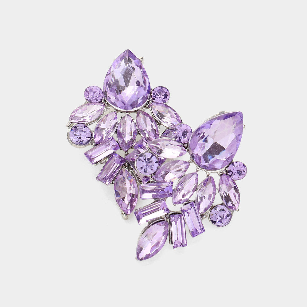 • Size : 1" X 1.4"• Post Back• Multi Stone Violet Crystal Evening Earrings | Crystal Pageant Earrings
